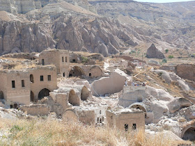 Çavuşin és un dels altres assentaments antics de la regió i un important centre cristià, amb una història molt semblant als anteriors emplaçaments que hem visitat. L'autocar ens deixa al costat d'una gran roca, que sembla un inmens rusc, on els antics habitants van construïr les seves cases, magatzems i templs. Es pot anar pujant, i amb compte, vigilar moltes de les seves sales.