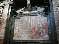 Tornem cap a la part nord i la part important del monument. Dins de la porta, sobre l'arc d'entrada, hi ha una capella, visible des del carrer, amb l'imatge de la Verge Maria, pintada en el segle XVII per un artista desconegut. La pintura esta coberta amb un ajust de plata daurat. Se li atribueixen poders miraculosos i no es extrany veure a persones resant en ple carrer. El 1993, durant una visita del Papa Joan Pau II a Lituània, va resar aquí.